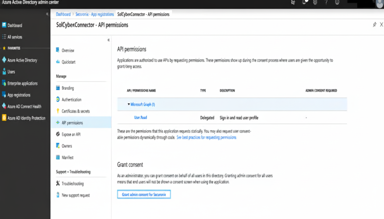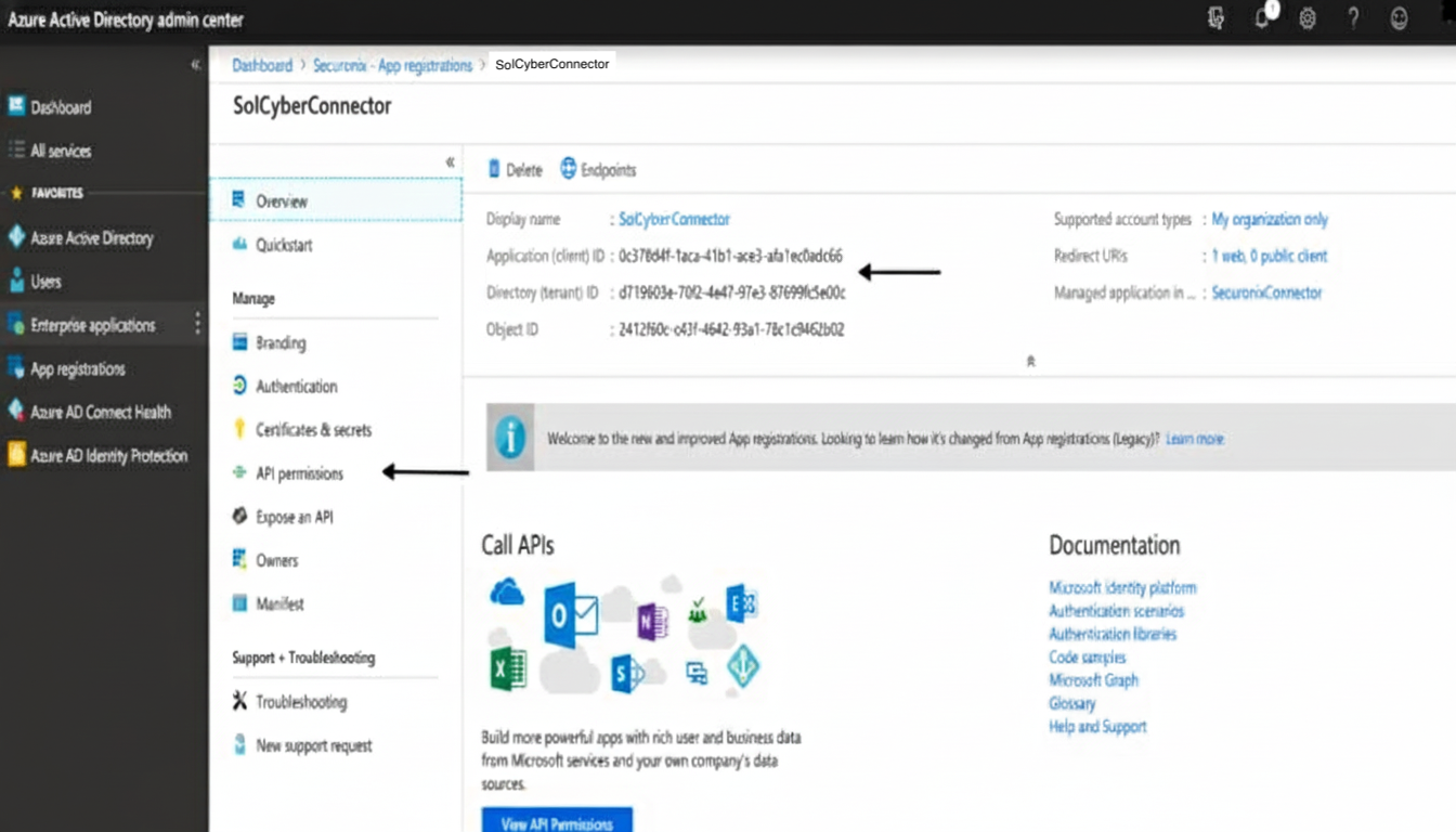 You will need to provide SolCyber with the secret value, along with the App and Tenant ID from above.