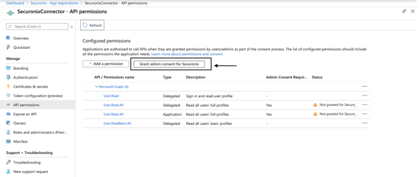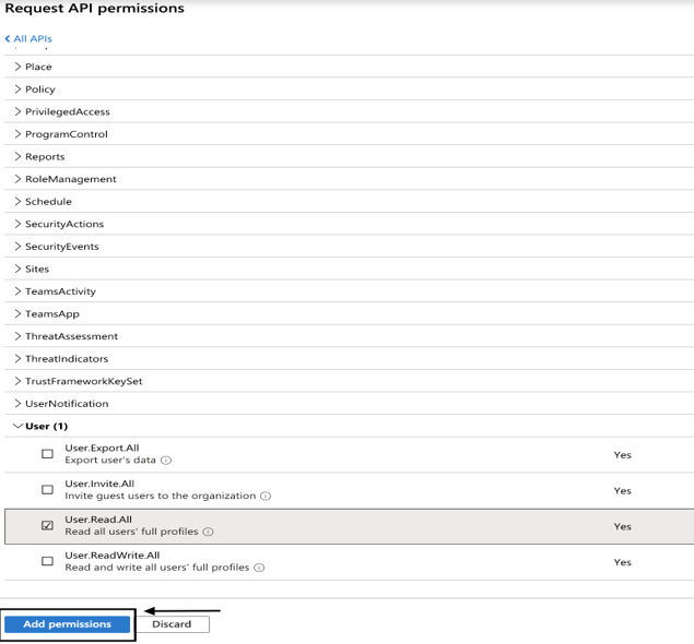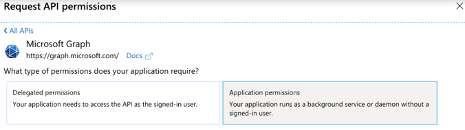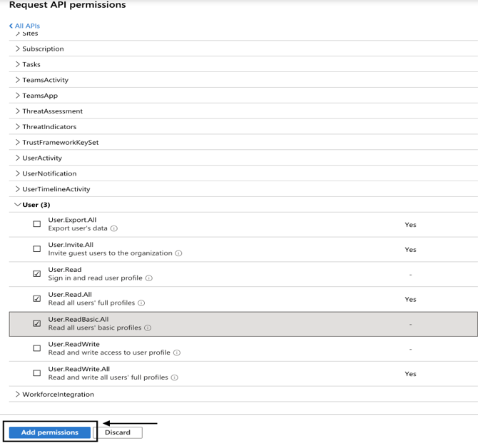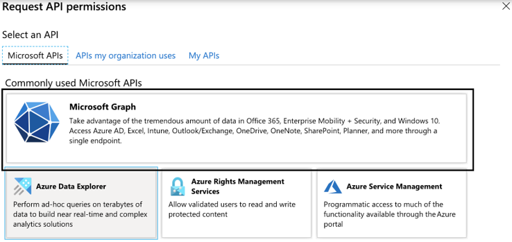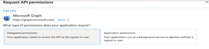 - Click Add a permission. A new Request API Permissions screen is displayed.