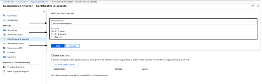 - Description: Enter a name for the secret key. (Ex. SolCyber-Secret-Key)