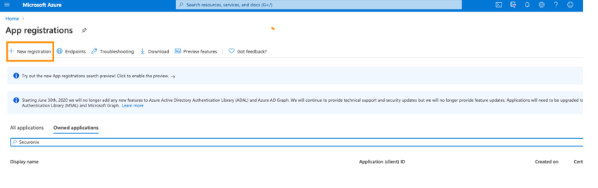 - Make a copy of Application (client ID) and Directory (tenant ID) for the application from the Application screen.