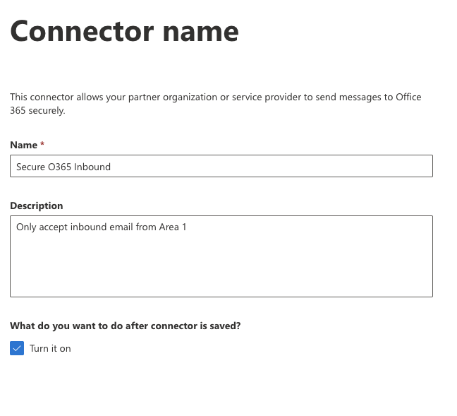 - Create an inbound connector