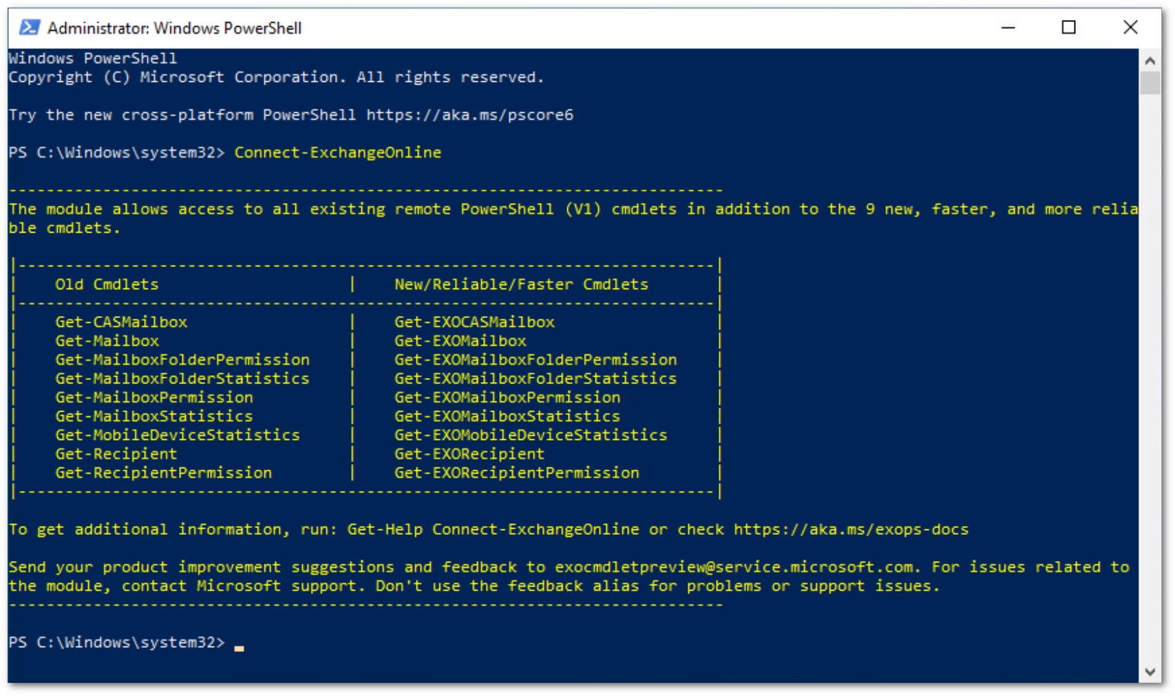 > Import-Module ExchangeOnlineManagement