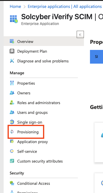 You should now be on the Overview page for the application you have created. If not, Go to Enterprise applications and select the SolCyber iVerify SCIM application.