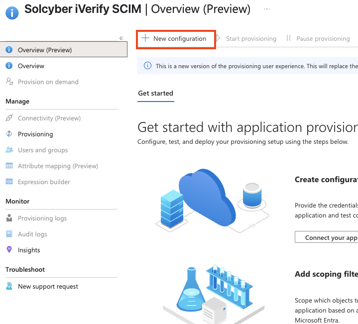 In the left menu under Manage, click Provisioning, then click + New configuration.