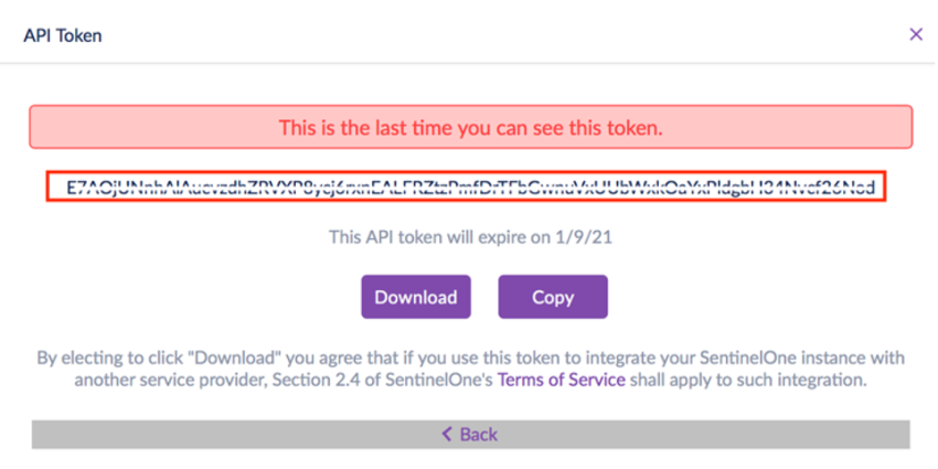 - Note: The host URL information will be similar to the following: https://usa-partners.sentinelone.net/