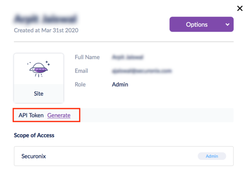 - Select your admin user account and click Generate API token.