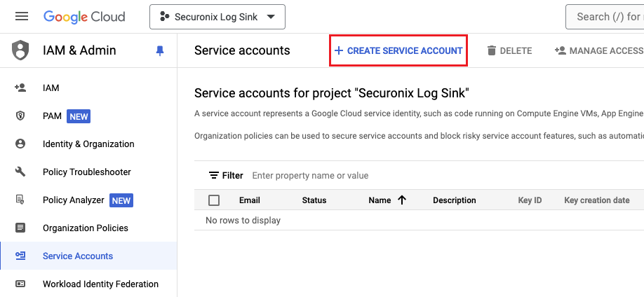 3. Click Create service account.
