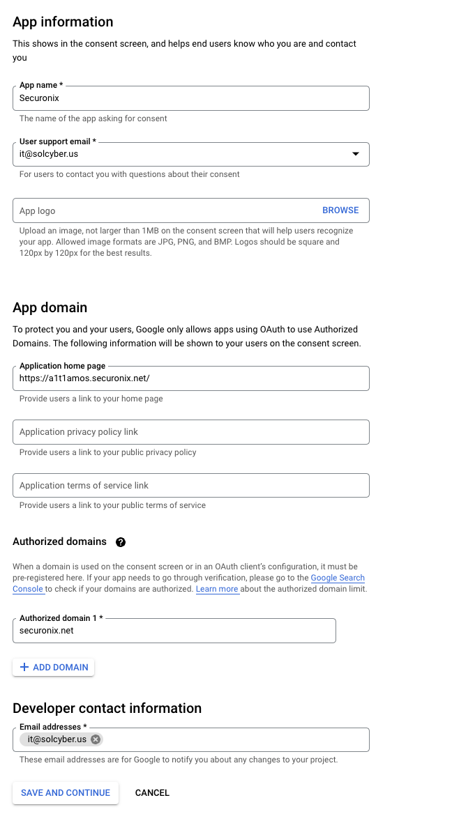 - Authorized JavaScript’s origin URI: https://a1t1amos.securonix.net