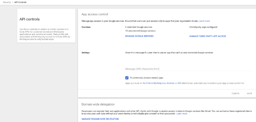 - Select Manage Domain Wide Delegation from the Domain wide Delegation section.