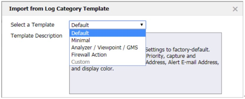 Note: The Firewall Action template is based on the Analyzer/Viewpoint/GMS template with additional support for logging dropped packets. This makes it ideal for troubleshooting connection issues while maintaining compatibility with SonicWall reporting software.
