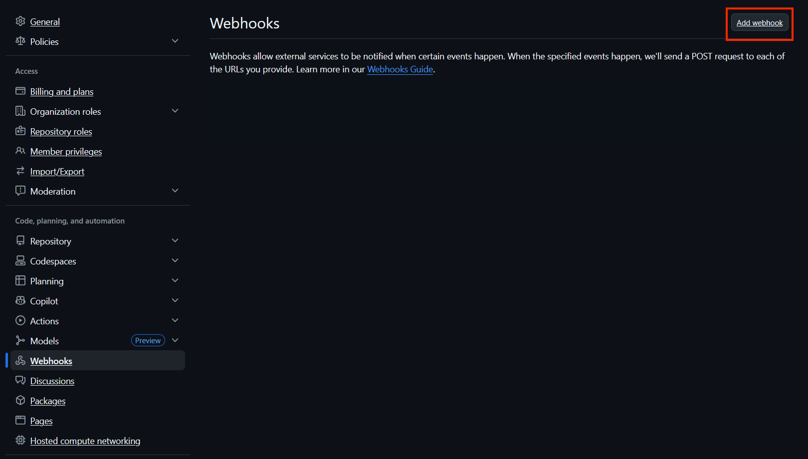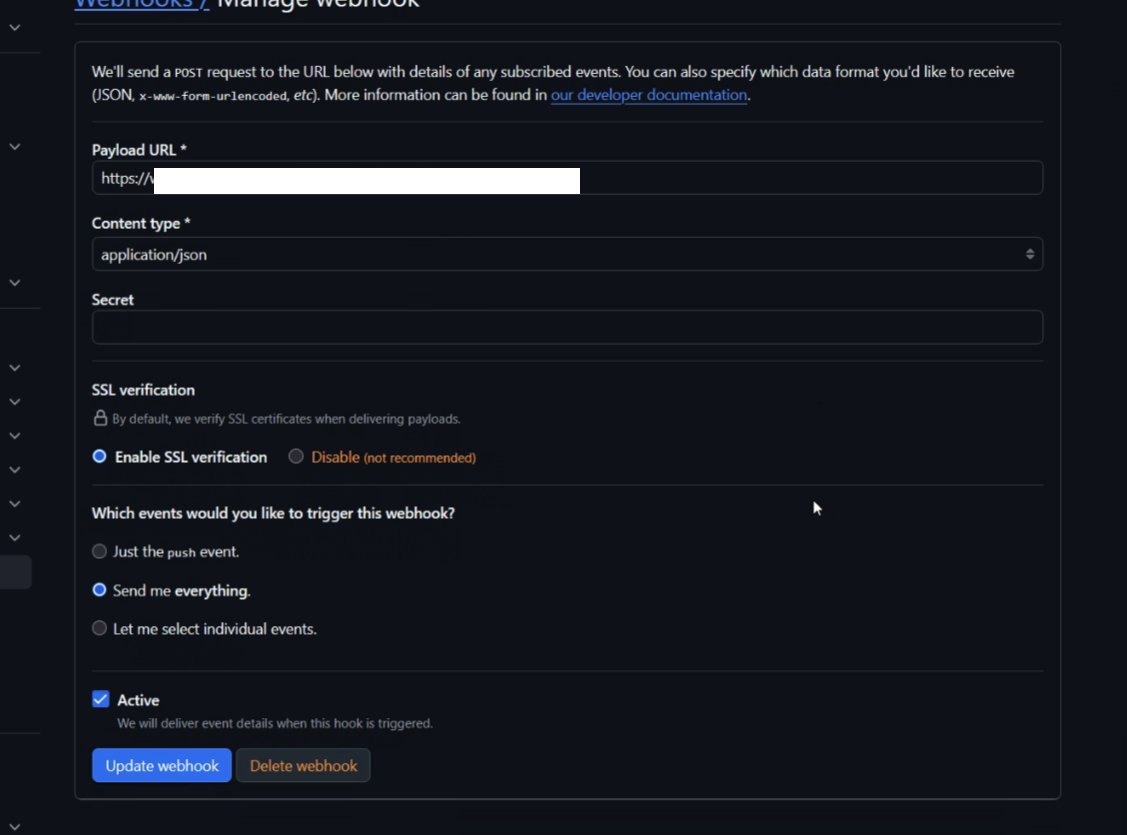Enter the webhook URL, select “Enable SSL verification” and select “Send me everything.”